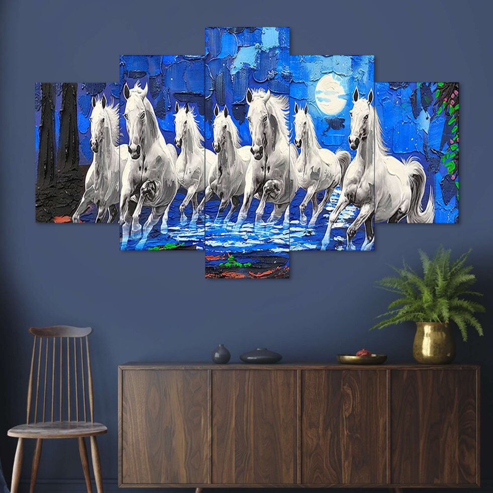 Horse Set of Five 3D Framed Paintings for Wall Decoration – Ideal for Home, Living Room, and Bedroom (75 x 43 CM)