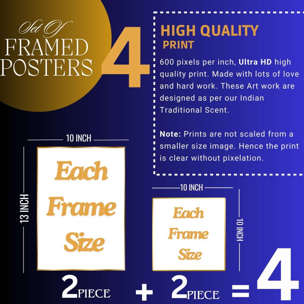 Set of Four Wall Paintings for Wall Dacoration Golden Framed Wall Paintings for Living Room & Bedroom Wall Art for Home Decoration & Office Wall Décor (13×10 inch CH-GD4-3)
